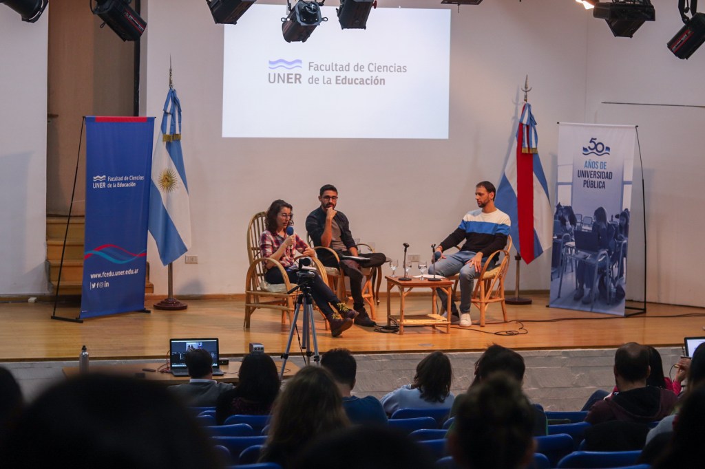 En un conversatorio titulado «El desarrollo de la Inteligencia Artificial y las transformaciones en educación y comunicación», Maia Numerosky y Enzo Ferrante, docentes, investigadores y especialistas en la temática, expusieron en el Auditorio de la Facultad de Ciencias de la Educación de la Universidad Nacional de Entre Ríos, con la moderación del docente e investigador Gonzalo Andrés.